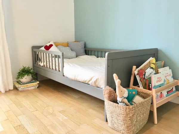 Changer le lit, c’est déjà beaucoup. Maintenir quelques repères dans la chambre aide l’enfant à ne pas perdre ses marques. La peluche fétiche ou le doudou reste dans le nouveau lit, rien n’empêche non plus de garder la même parure de lit pour rassurer.