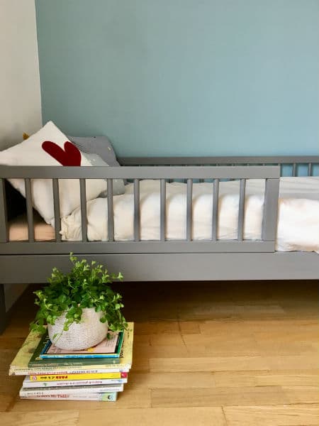 Chez nous, la bascule s’est faite après un voyage où notre fils avait dormi sur des matelas au sol, faute de lit bébé. Il avait alors 2 ans et 7 mois. Chez ses grands-parents, il dort sur un lit gigogne “classique”, trop haut à mon goût, malgré la barrière et les coussins. À la maison, le lit de transition très bas nous a convaincus : la petite barrière fait son travail, aucun souci à signaler.