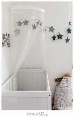 Côté linge de lit, nous avons choisi deux parures en coton bio de Nobodinoz, deux draps housse chez Ptits Basile et un protège-matelas Éveil & Nature via Greenwez. La couette et l’oreiller viennent de Sevira.Kids, une marque que l’on a découverte un peu par hasard mais qui s’est révélée très fiable.